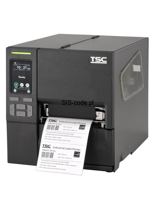 TSC MB240 seria przemysłowych drukarek etykiet termicznych / termotransferowych jest nowym liderem w dziedzinie druku etykiet przemysłowych o szerokości do 4". Seria MB240 została zaprojektowana tak, aby pasowała do większych modeli drukarek przemysłowych TSC, w tym serii MH240 i MX240P. MB240 ma niewielkie wymiary, łatwo zrozumiały interfejs operatora i pełny zestaw opcji spełniających niemal każdą aplikację drukującą. Kompaktowa konstrukcja, cicha praca i szybka wydajność etykiet sprawia, że urządzenie odnajduje się w każdych warunkach. W pełni metalowa konstrukcja drukarki i mechanizm odlewniczy z aluminium są wystarczająco wytrzymałe, aby wytrzymać najtrudniejsze warunki produkcji i są zaprojektowane na lata bezproblemowego użytkowania. Nowy MB240T jest wyposażony w łatwy w użyciu, kontrastowy, kolorowy panel LCD o przekątnej 3,5 cala z 6 przyciskami. Typowe zadania, takie jak kalibracja etykiet, są na wyciągnięcie ręki. Menu można dostosować, aby przynieść często używane zadania na przedni ekran w celu szybszego, mniej skomplikowana użytkowania.